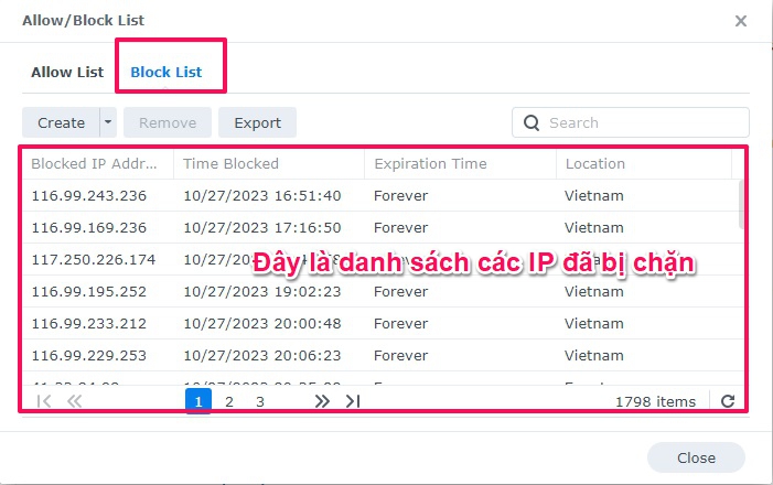 Chọn vào IP muốn gỡ ra khỏi danh sách khóa >>Remove