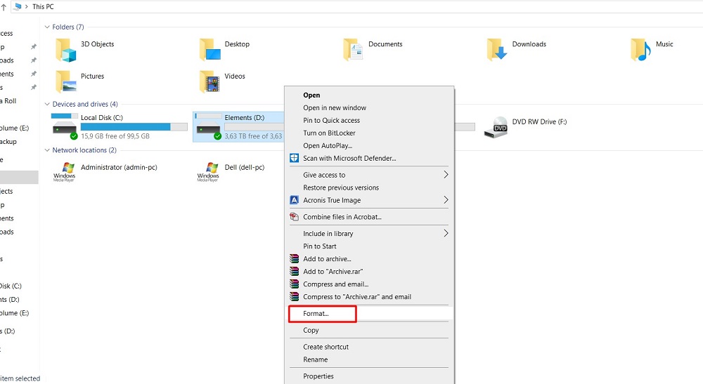 Bạn chọn vào ổ cần format, ở đây của mình là ổ cứng di động WD Element.