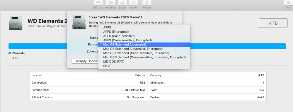 Tại phần Format bạn có thể chọn định dạng mình muốn, đây đa phần đều là các định dạng dành riền cho MAC, và exFAT sẽ tương tự như trên windows.