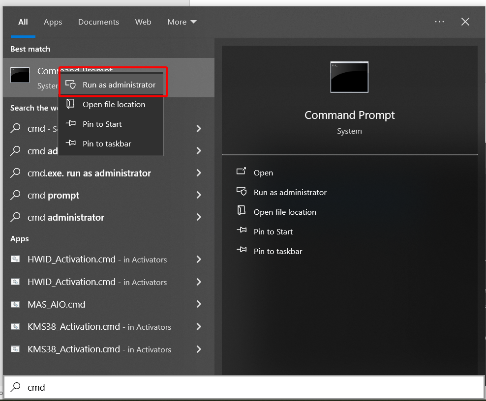 Tùy từng máy bạn sẽ mở CMD thường hoặc mở CMD bằng Run administrator.